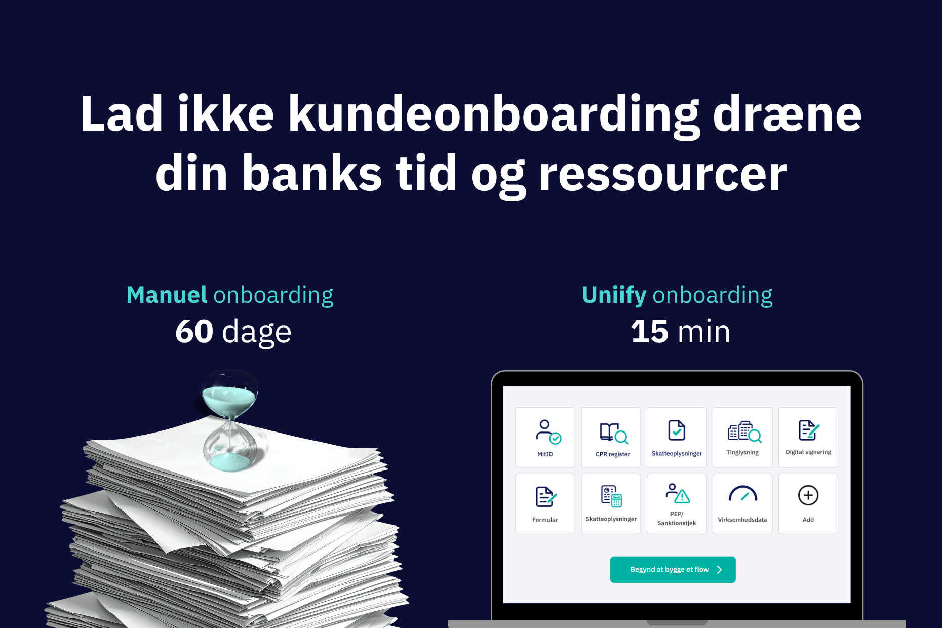 Hos Uniify har vi specialiseret os i at fjerne det tunge løft i Virksomheds onboarding. Vi hjælper banker med at transformere deres proces fra en manuel tidsrøver til en automatiseret forretningsfordel, hvor sikkerheden følger med hastigheden.